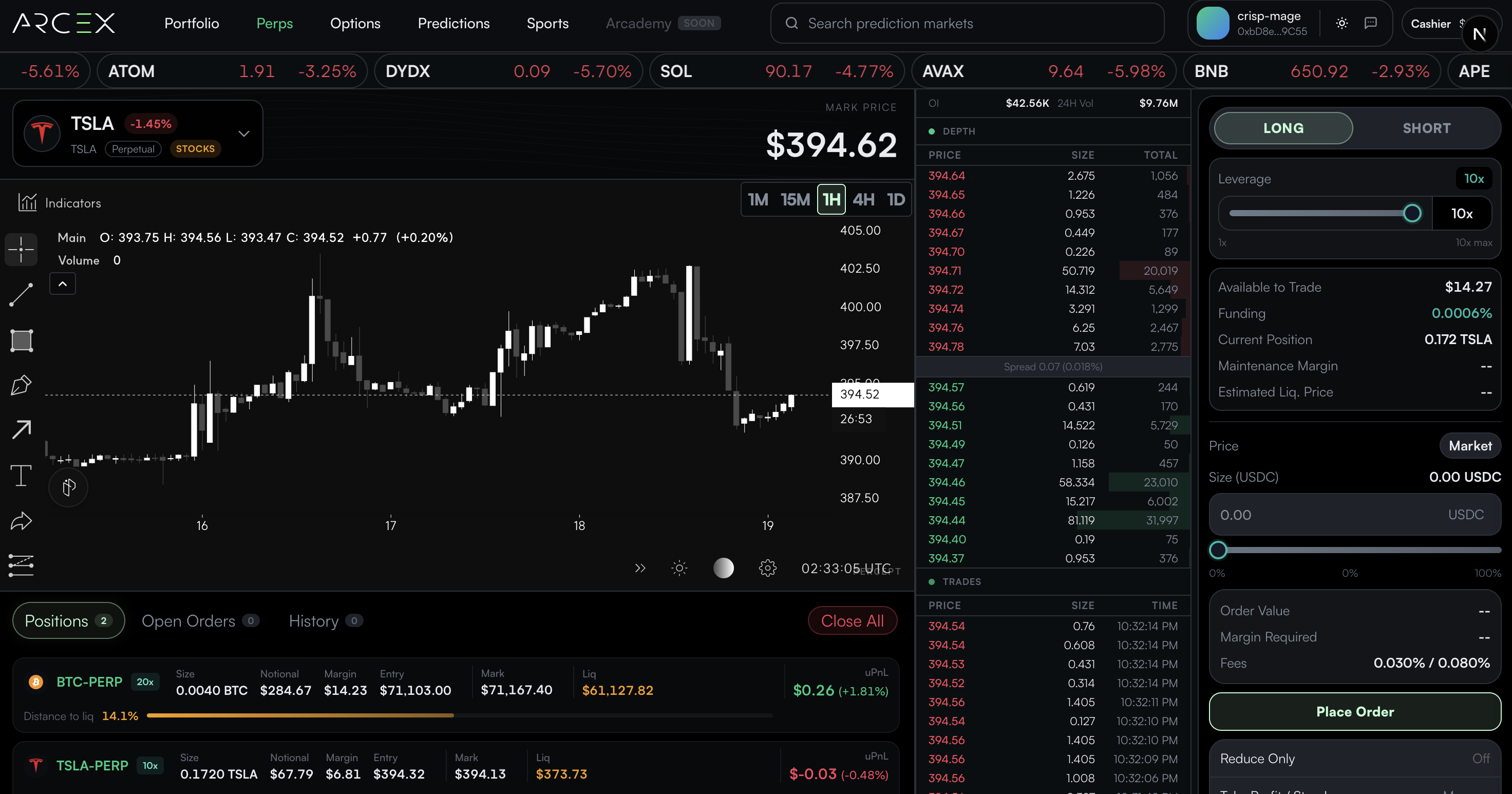 Trade perpetuals on 50+ crypto assets with up to 100x leverage on major pairs.