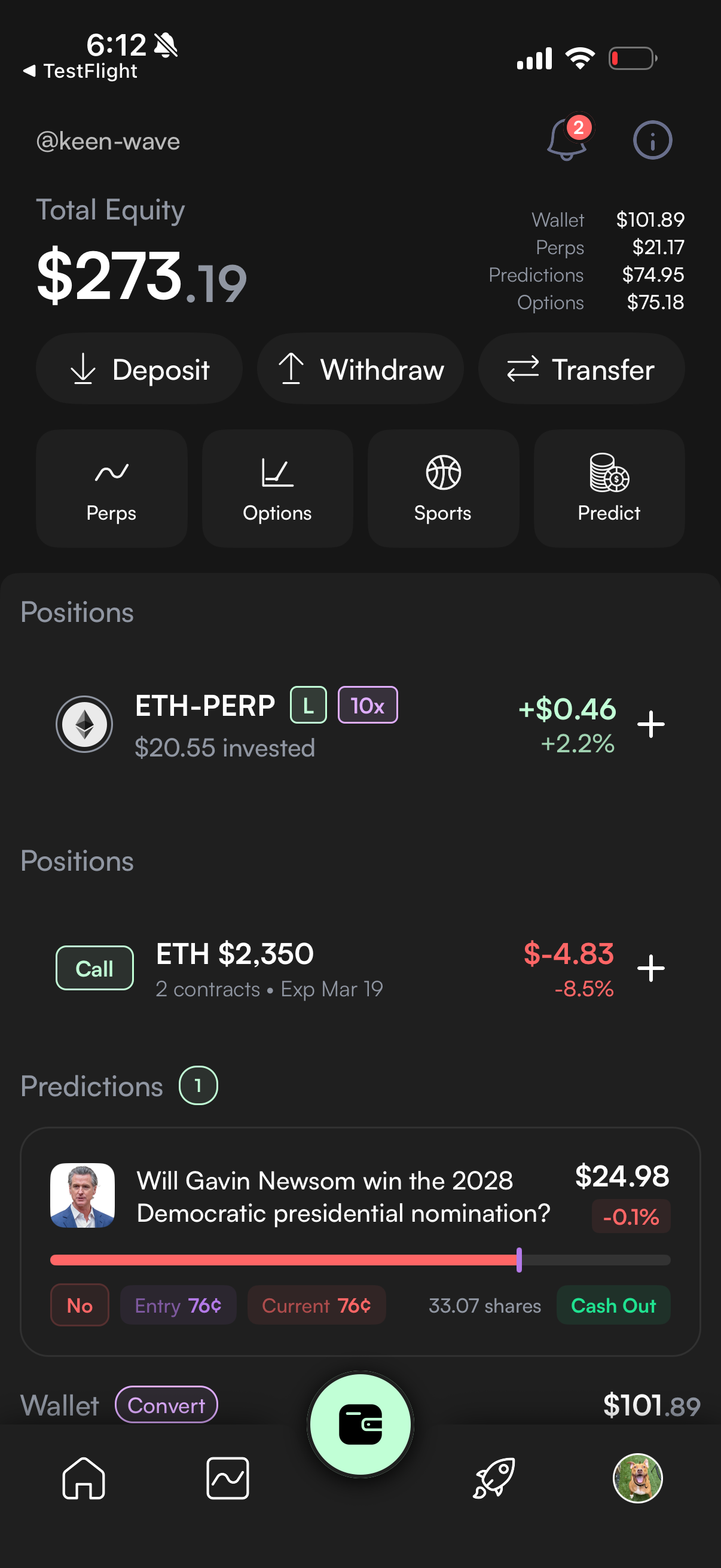 Trade spot, perps, prediction markets, and sports, all from your phone.